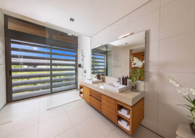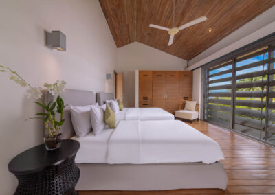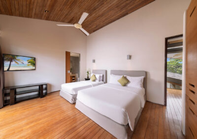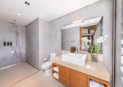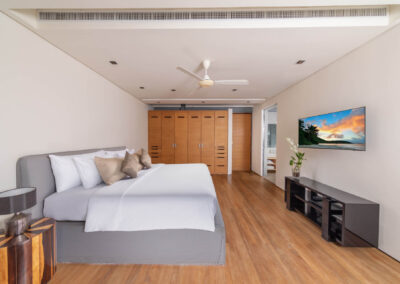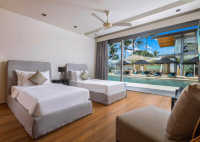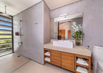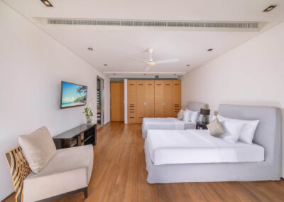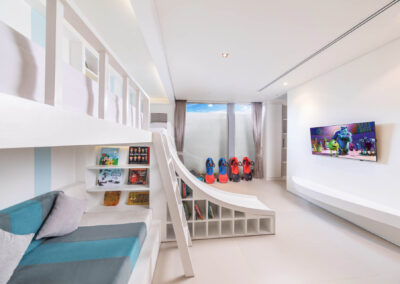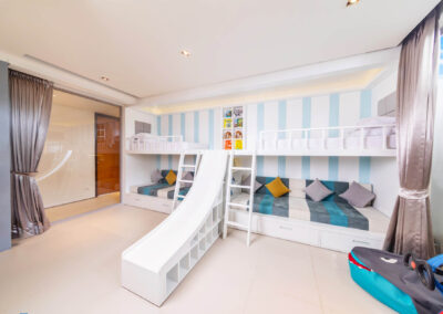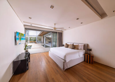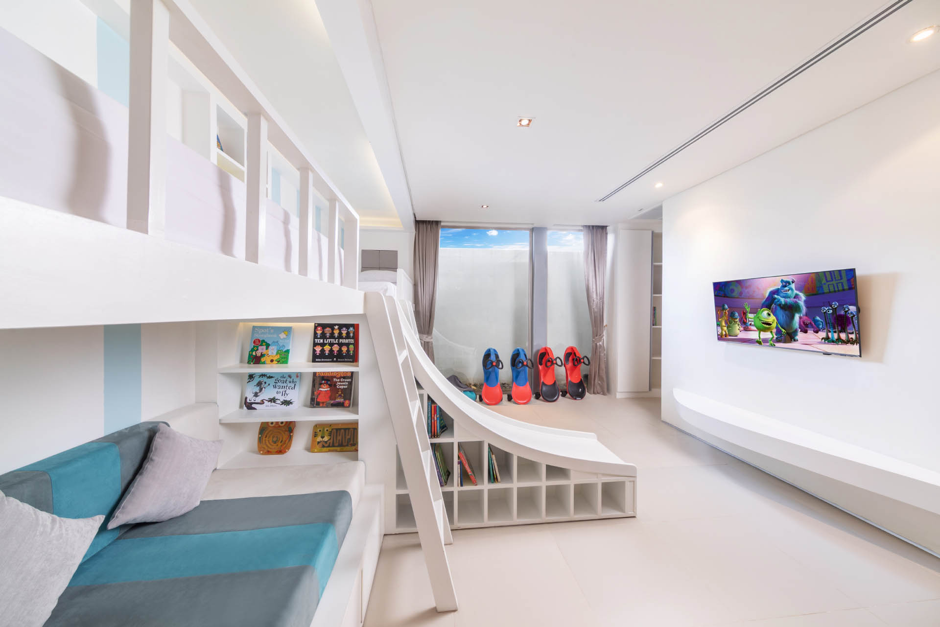 Designed especially for families, the villa boasts a master bedroom with ocean and pool views from its elevated position on the first floor, an expansive master suite on the ground level, four spacious guest bedrooms across various levels, and a lovely kids’ bedroom equipped with all the essentials.
